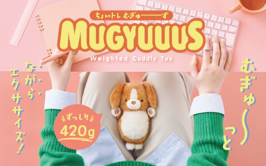 『MUGYUUUS (むぎゅーず) 』は、太ももの間に挟んでオフィスでこっそりエクササイズができる、ウエイトのあるぬいぐるみです。