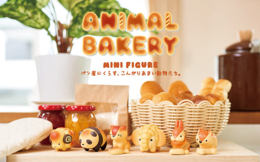 パン屋にくらす、こんがりあまい動物たち『ANIMAL BAKERY MINI FIGURE(アニマルベーカリー ミニフィギュア)』。ミニフィギュアでは、パンのこんがりとした焼き目や質感も細かく表現。今にも甘い香りが漂ってきそうな、かわいらしいデザインにご注目ください。