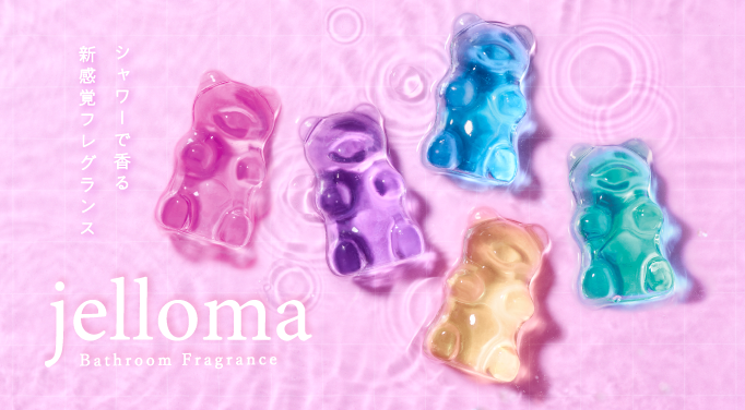 ぷるんと弾けるゼリー『jelloma』にシャワーを当てると、ゆっくりと溶けながら、バスルームが豊かなアロマの香りに包まれます。シャワー派の人や、忙しくて湯船に浸かる時間がない人でも、ひとときのリラックスタイムを味わうことができます。