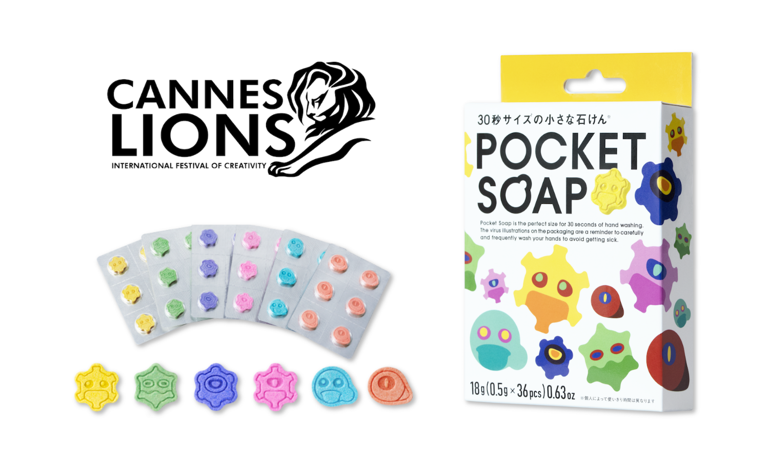 手洗いで手の平のウイルスが消えていく様子を可視化した30秒サイズの小さな石けん「POCKET SOAP」が「カンヌライオンズ国際クリエイティビティ・フェスティバル 2020/2021」において、「ヘルス・ウェルネス」部門にて銅賞を受賞しました。
