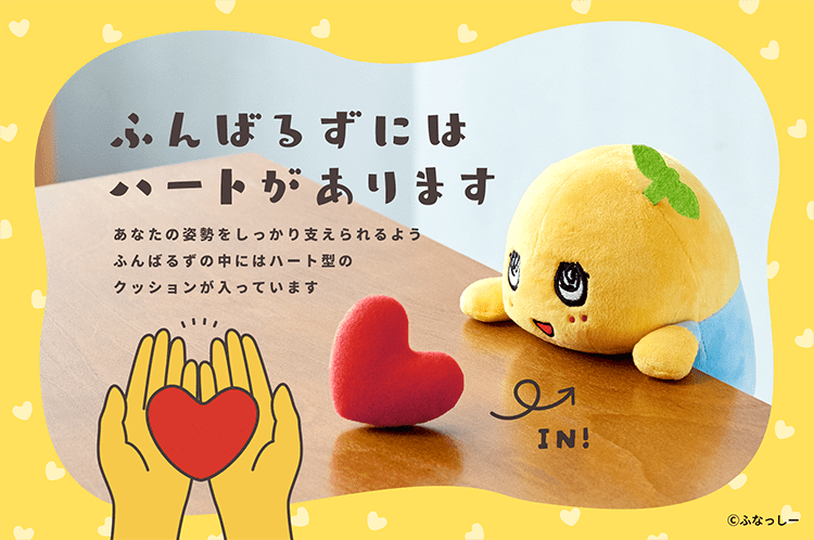 累計販売数量20万個を突破した、“猫背”なあなたを支えるぬいぐるみ「ふんばるず」に、「ふなっしー」が登場。