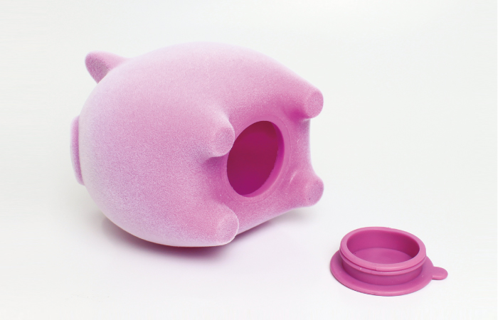 フロッキーは「綿のような、ふわふわとした」という意味です。細かく短い繊維を垂直に接着して加工する方法のことで、ビロードのような風合いが特徴です。