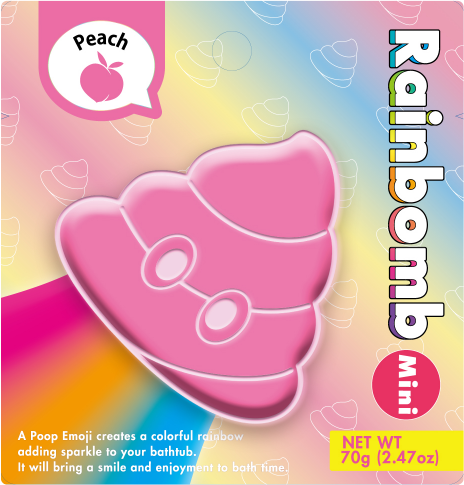 かわいらしいウンチ形のバスボムからカラフルな虹が現れます。