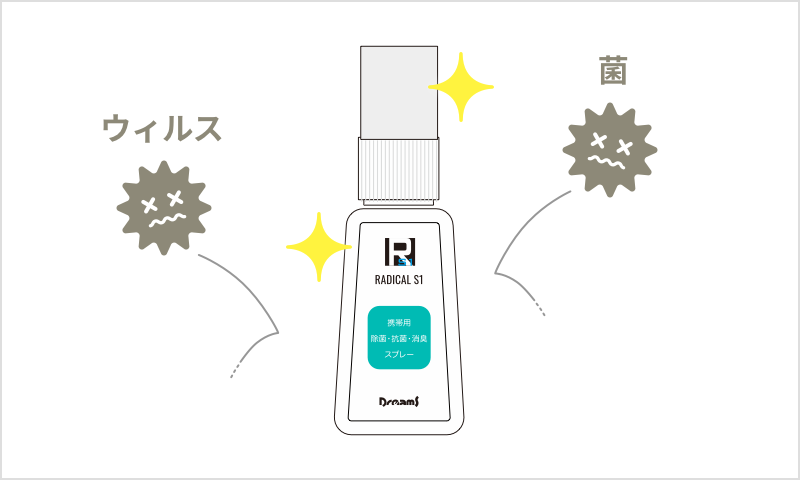 新お出かけエチケット!電車を降りたら、シュッとひと吹き!!お持ち運びに便利なハンディサイズの99.9% 強力除菌スプレーです。