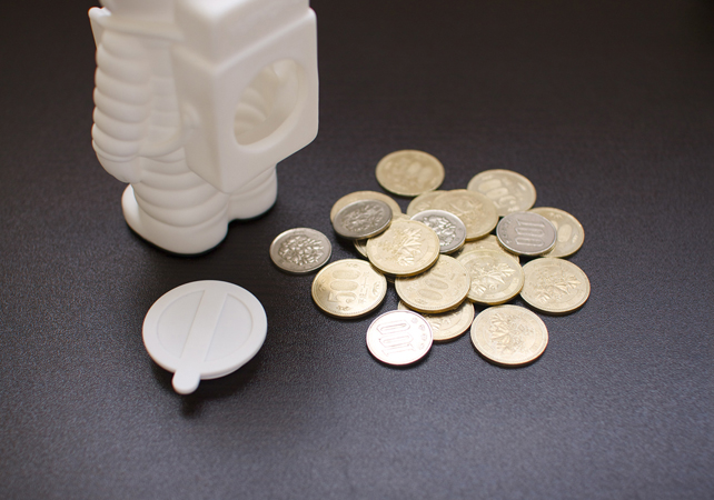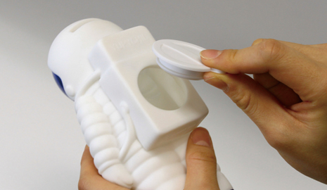 Coin slot is on the back of Mr.Yupychil's helmet.
