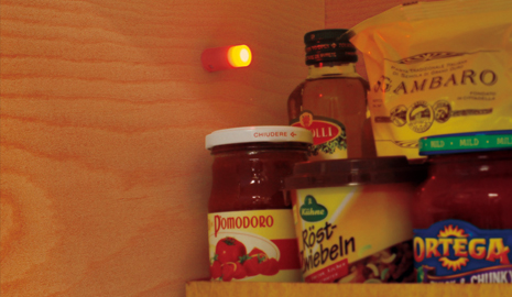 Use pin light in dark areas such as under the sink, or inside the closet.