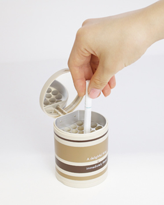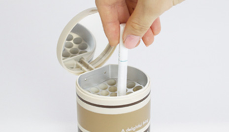 The inner bee-hive compartment automatically puts out your cigarette when you slot it inside.
