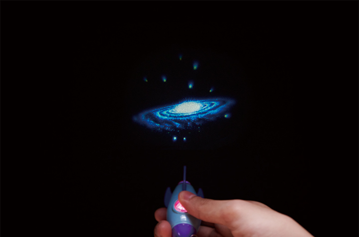 大人っぽいカラーのロケットからは銀河が映し出されます!