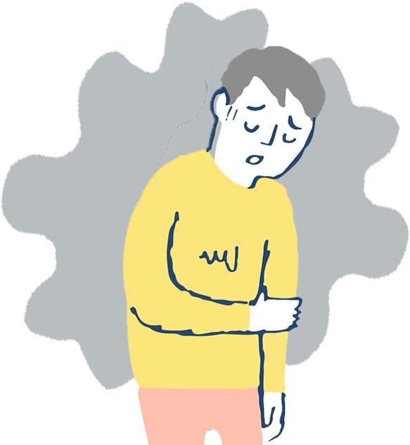 吐き気・腹痛(下腹部)を伴った後、38℃前後の発熱と下痢を繰り返します。