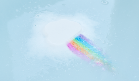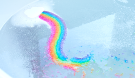 ③しゅわしゅわと溶け出し、バスタブにきれいな虹が架かります。虹が溶けた後は、バスタブの中が夜空に変わります。